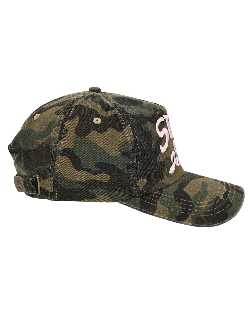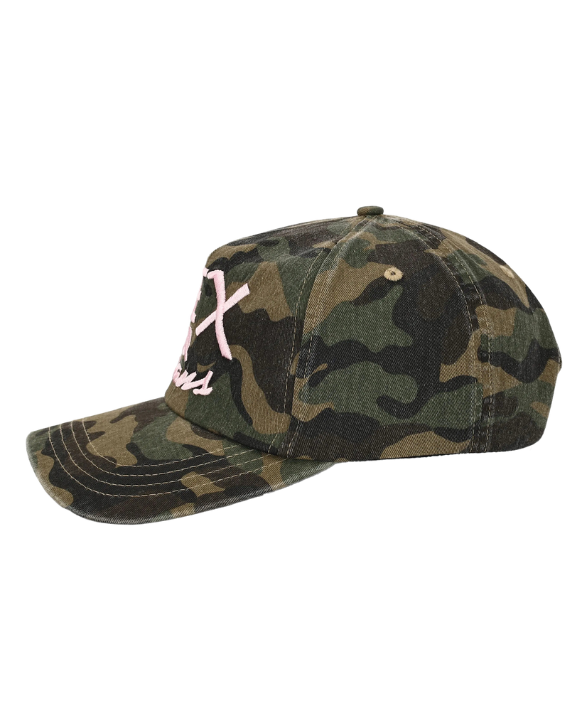 Camo Trucker Hat with Pink Sex&jeans® Embroidery